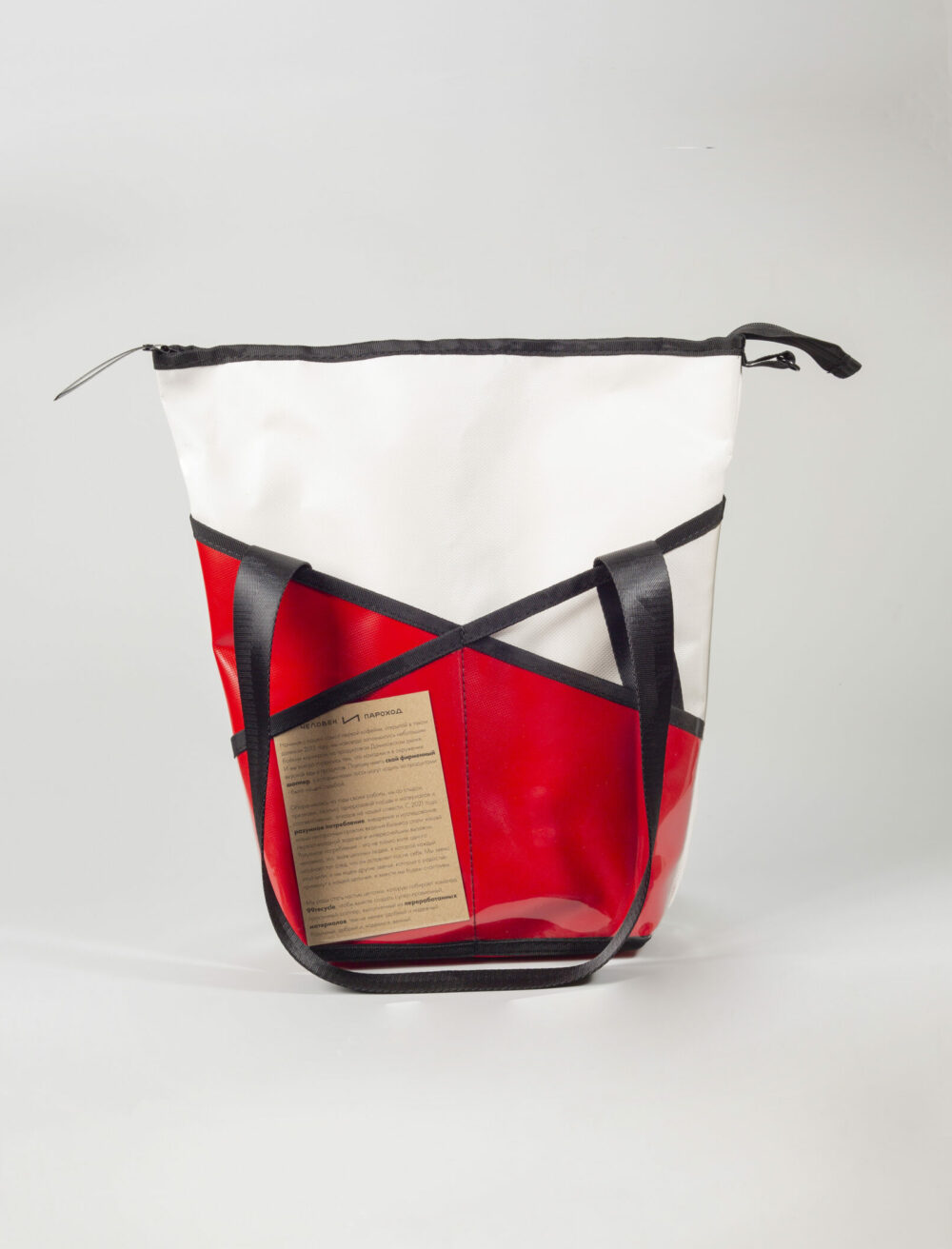 Эта сумка сделана на основе базовой модели шопперов от 99recycle из обрезков производства батутов, тентов и лодок.
